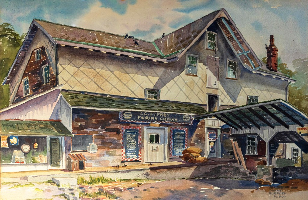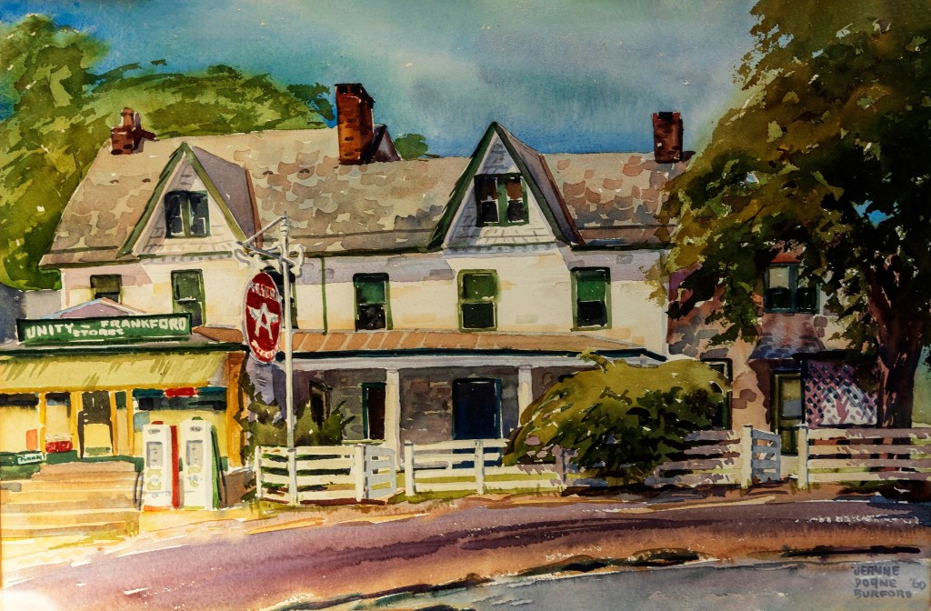 Above photos by Jeanne and below quote taken from Facebook’s Bucks County History Group · post by, Richard Noe ·February 24 ·Up unto now, 2 “Hidden Treasures”. Paintings lately hanging on a wall in Holland, PA. Famous local Artist, Jeanne Doane Burford, 1960 painted both the Mill as it was then and the Store / House combo of the Finney Family who owned the Mill across the street on Buck RD. Both original watercolor 11×14 framed paintings have had “digital refreshment”, as watercolor paintings tend to fade over 65 years of time due to sunlight and overhead lighting. A huge THANKYOU to Bob Wright for letting me copy his paintings with my camera in RAW format/Natural sunlight.